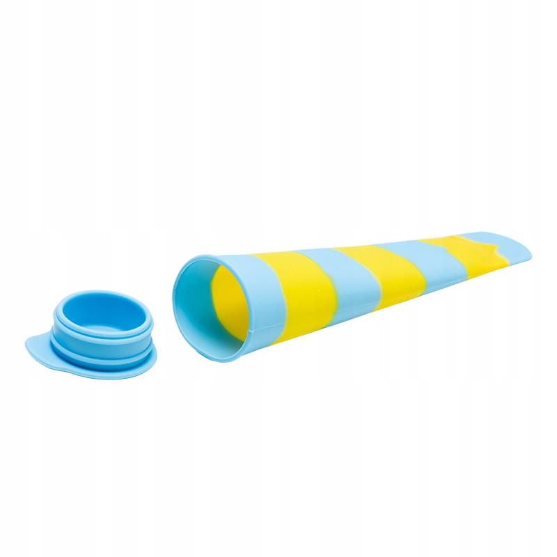 Silikonowy rożek niebiesko-żółty (100 ml, 20 cm) — idealny do domowych lodów i sorbetów. Elastyczny, bezpieczny materiał, łatwy w czyszczeniu i zmywarce. Komfort w trzymaniu i porcja, która idealnie sprawdzi się w gorące dni. Świetny gadżet do kreatywnej kuchni.